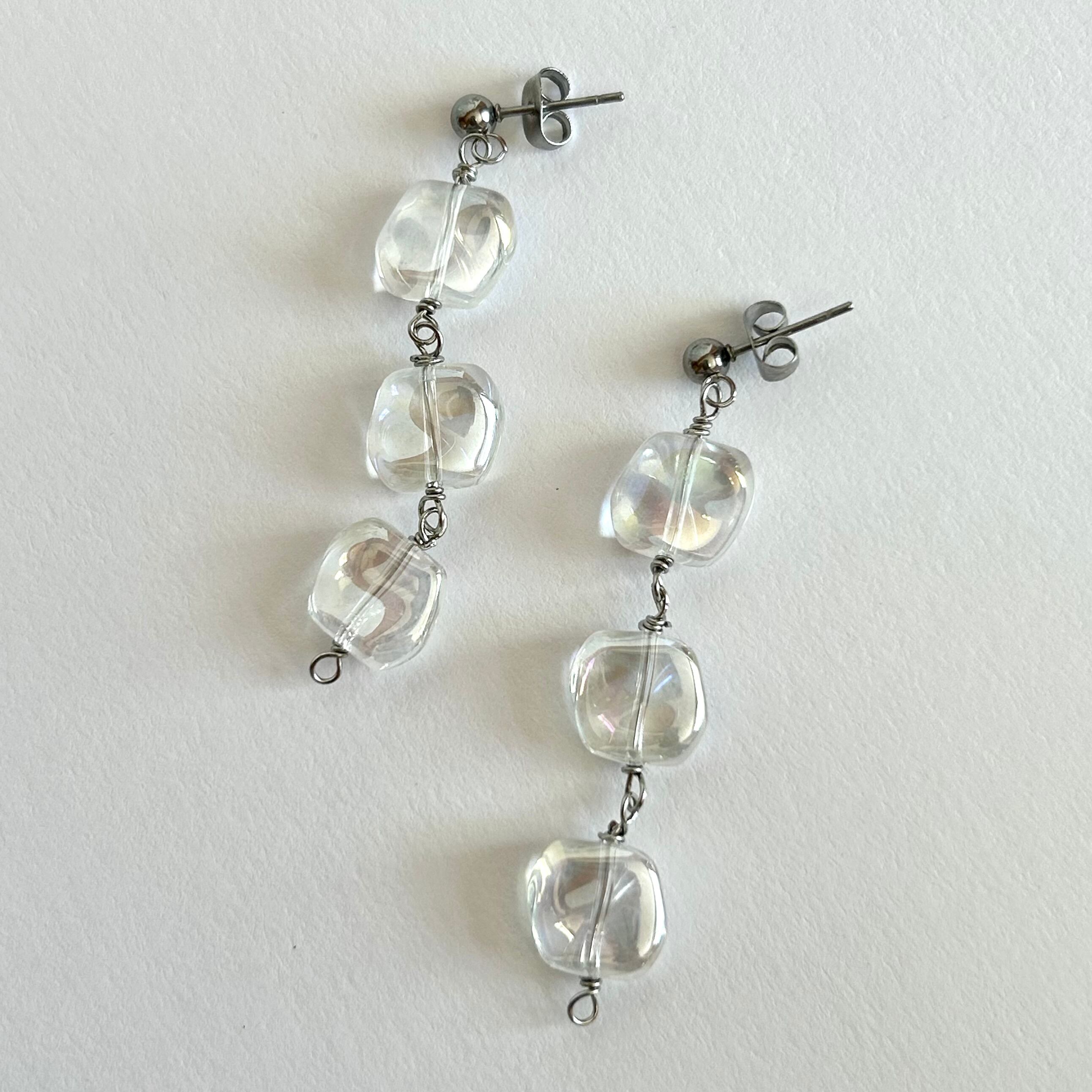 揺らぎのあるオーロラビーズを3連に繋げたシンプルなピアスです。
